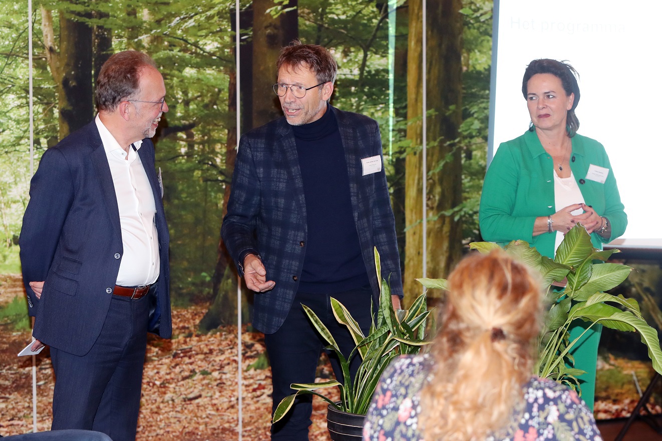 Op de foto staan van links naar rechts de sprekers: Libbe de Vries (gemeente Opsterland), Anne Jochem de Vries (Sport Fryslân) en Lineke Kleefstra (GGD Fryslân). Foto is gemaakt door Sietse de Boer.