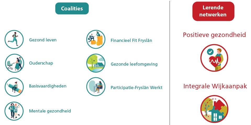 Hieronder de groepen (coalities en lerende netwerken) waar professionals binnen de Friese Preventieaanpak op preventie samenwerken.