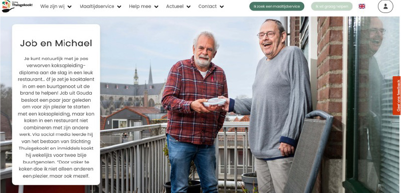 Stichting Thuisgekookt gaat terug naar wat vroeger heel normaal was: buren die zorgen voor elkaar. Buurtgenoten koken voor mensen die dat niet meer kunnen en die koppeling zorgt voor ontmoeting en langdurig contact. Neem eens een kijkje op hun website, want ze brengen de deelnemers in beeld: authentieke, hele gewone mensen. Dat maakt enthousiast en nieuwsgierig en stimuleert mensen om mee te willen doen.