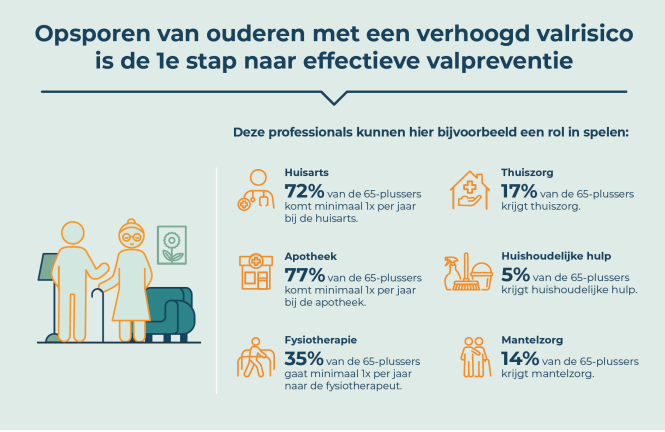 Door samen te werken met anderen kan u uw doelgroep nóg beter bereiken. VeiligheidNL brengt met deze afbeelding duidelijk in beeld met wie u kan samenwerken in het geval van valpreventie. Op deze pagina vindt u meer voorbeelden van aansprekende communicatie, die altijd in zijn geheel ingezet kunnen worden.