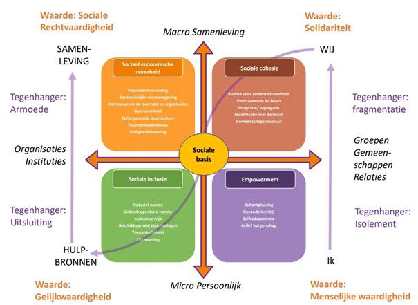 - Sociale cohesie, gericht op solidariteit: inwoners ervaren verbondenheid vanuit gedeelde normen en waarden.