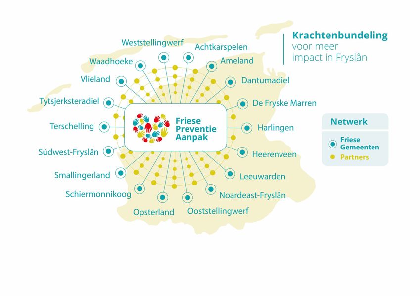 Alle samenwerkende organisaties (op alfabetische volgorde) binnen de Friese Preventieaanpak: